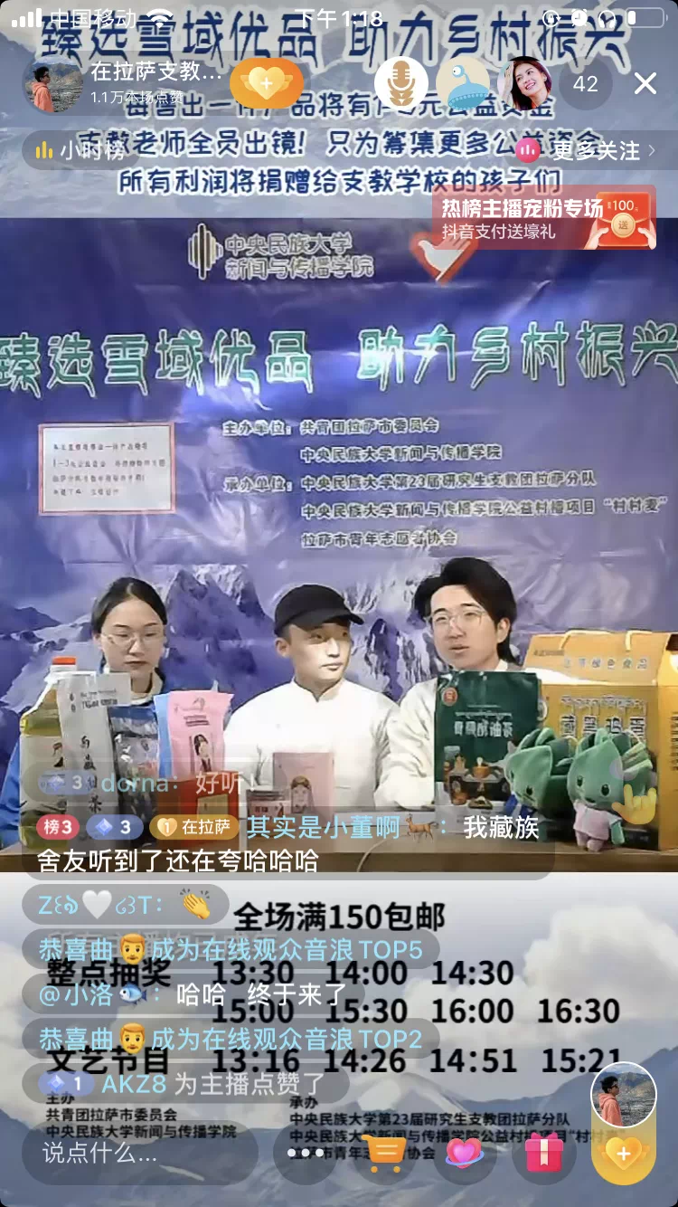 研究生支教团、拉萨市青年志愿者协会,秉承志愿服务的初心,在西藏拉萨共同举办了一场以“臻选雪域优品,助力乡村振兴”为主题的公益直播带货活动。