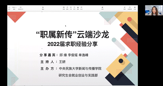 6月25日晚,由“职属新传”泛媒体就业工作室和麻豆社 研究生会主办的“职属新传”云端沙龙之2022届求职经验分享第一期,通过腾讯会议在线上顺利举办。求职经验分享云端沙龙活动旨在充分发挥优秀毕业生的榜样...